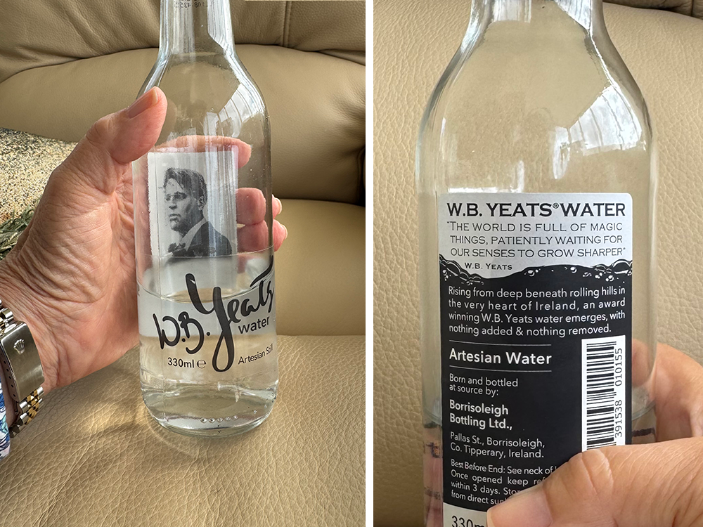 That’s right, I’m holding this wisdom on a bottle in my hand. How brilliant of the marketing arm of this Irish bottling company to use the image and quote of the 1923 Nobel laureate to deliver enlightenment along with quenching our thirst.
